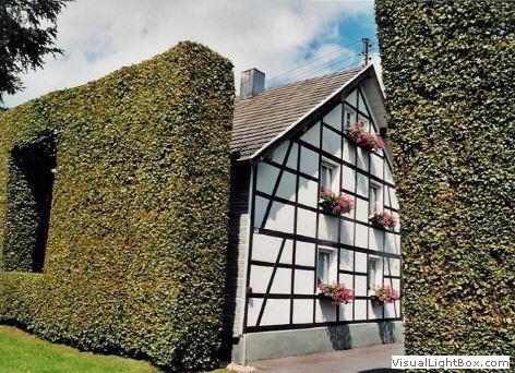 Haushecken bieten dem dahinterliegenden Haus Schutz vor Wind und häufig auftretendem Schlagregen. Sie bestehen aus engständigen, ein- oder zweireihig gepflanzten Rotbuchen, die bei einer Tiefe von 70 bis 100 cm eine Höhe von 4 bis 6 Meter erreichen. Die Hecke ist unten etwas breiter und läuft oben schmal aus. Die hohe Stabilität wird durch eine ausgeklügelte Durchflechtung erreicht. Dazu werden vom dritten Jahr an jüngere Äste und Zweige von Hand zurückgebogen und hinter stärkeren eingeklemmt. Ab dem sechten Jahr sollte die Hecke regelmässig beschnitten werden. So entsteht eine dicht verzweigte Hausschutzhecke, die sowohl flexibel als auch standfest ist. Im Monschauer Heckenland gibt es knapp tausend solcher Haushecken mit einer Länge zwischen 10 und 30 Meter. Auffallend ist, dass die Haushecken meist der Hauptwindrichtung entsprechend westlich und südwestlich ausgerichtet sind. Daher treten an heckengeschützen Häusern auch selten Sturmschäden auf. Eine Hausschutzhecke verbessert auch die Wärmebilanz eines Hauses, senkt die Heizkosten, dämpft den Strassenlärm und wirkt als Staubfilter.