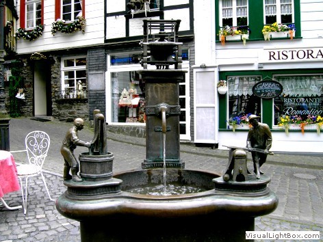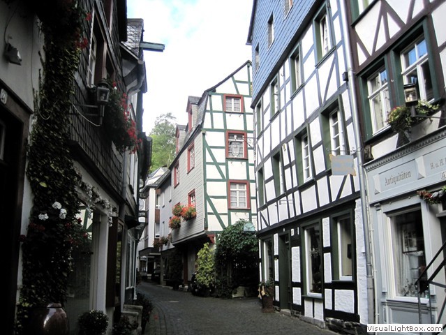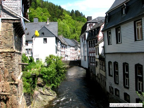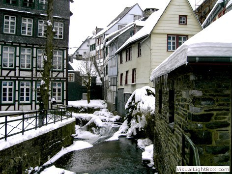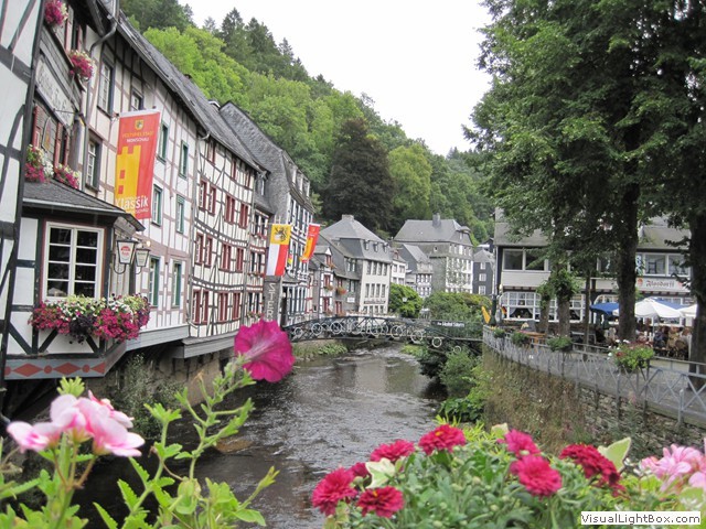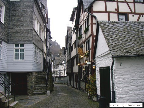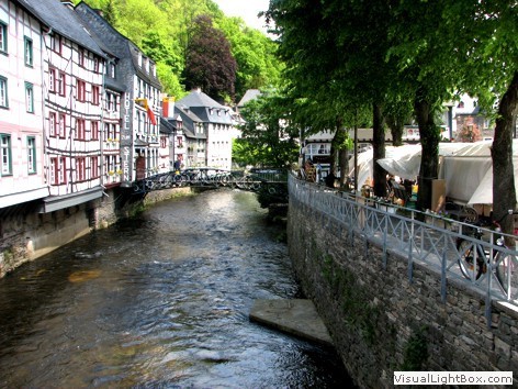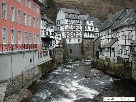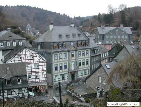 Monschau, ein romantisches Städtchen am Rande des Hohen Venns, unweit der belgischen Grenze, ist ein beliebtes Ziel für Touristen aus aller Welt. Die Altstadtkulisse hat sich seit fast 300 Jahren so gut wie nicht verändert. Das Stadtbild wird geprägt durch enge, winkelige Gassen, zahlreiche Fachwerk- und Bruchsteinhäuser, die seit je her mit steilen geschieferten Dächern eingedeckt sind. Die prächtigen Patrizierhäuser (z.B. das Rote Haus) aus dem 18. Jahrhundert passen prächtig in das historische Stadtbild von Monschau