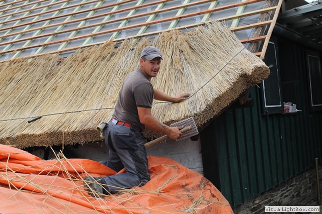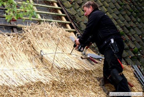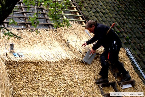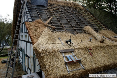 Mit der Firma Wolfgang Thiel, die ihren Sitz in Norddeutschland hat, ist ein kompetenter Dachdecker gefunden worden. “Nur etwa einmal alle zehn Jahre kommt es vor, dass wir ein Strohdach decken müssen», erklärt Wolfgang Thiel, der hauptsächlich Reetdächer deckt.